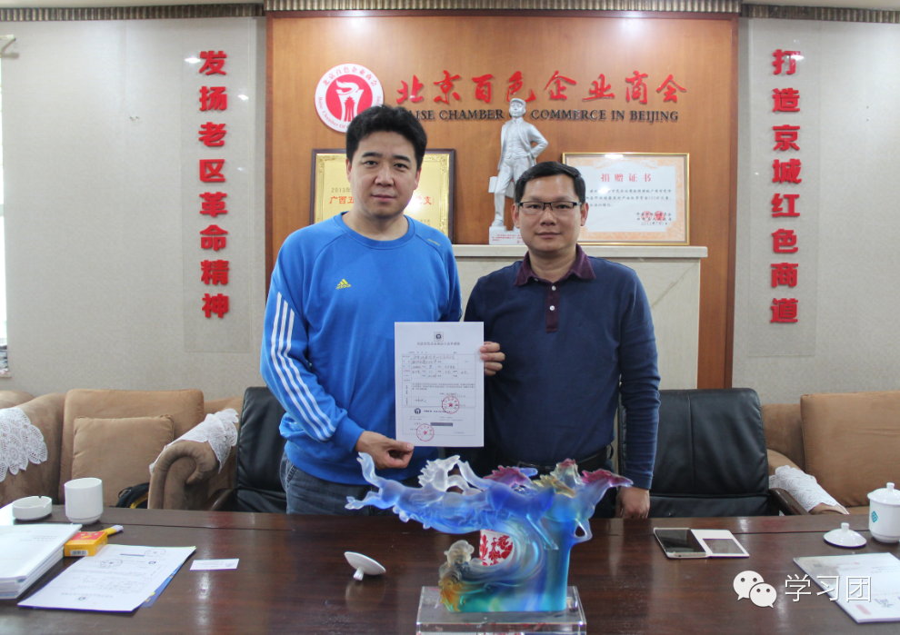 11日下午,世界姚氏宗亲会理事、海南兆康投资开发有限公司总经理姚满林到访商会并入会,北京百色企业商会会长姚贤良热情接待并交流,商会秘书长宋富强一同参加座谈。姚经理就海南房地产项目逸龙湾海景房销售合作事宜与会长姚贤良交流了意见,并取得了初步共识。座谈会上,经商会会长审核批准,海南兆康投资开发有限公司总经理姚满林填写了入会股东分红申请表,成为了商会股东会员,领取了五千元百宝币。