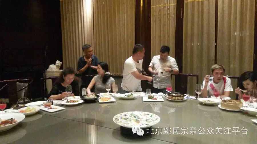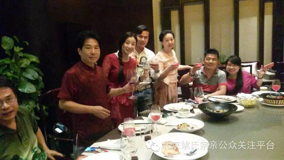 2014年7月22日晚上,在姚冰宗亲的组织下,在姚克俭宗亲的安排下。为欢迎几位外地宗亲的到来,北京姚氏宗亲联谊会的家宴在日坛饭庄举行。席间,尽管有多位为大家所熟知的宗亲,还有刚刚找到宗亲家族的新人,以及三位外地宗亲的加入,但这并没有影响大家在一起一家亲的热情和激动。在相互熟知之后,一种其乐融融的亲情便自然而然地流露出来,一种强烈的回家的感觉让大家的心也越走越近。