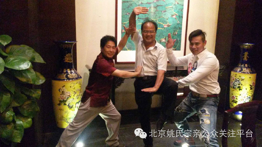 谈笑晏晏中,我们认识了从广西来北京参加清华总裁班的玉林商会副会长姚焕耀宗亲,其年近半百,事业有成,仍孜孜不倦追求知识的精神,实在值得我们姚家人敬佩和发扬光大。老当益壮,雄姿不减当年的李氏八极直系第五代传人姚玉成宗亲,其作为武术人独有的执着和热忱实在让人感动。另外,我们还见到了姚氏家族在演艺界的新秀姚雨鑫,作为影视歌三栖小明星和中国内地新晋功夫型男,雨鑫不仅人气在国内一路飙升,他同时也为我们姚氏家族带来了莫大的骄傲!